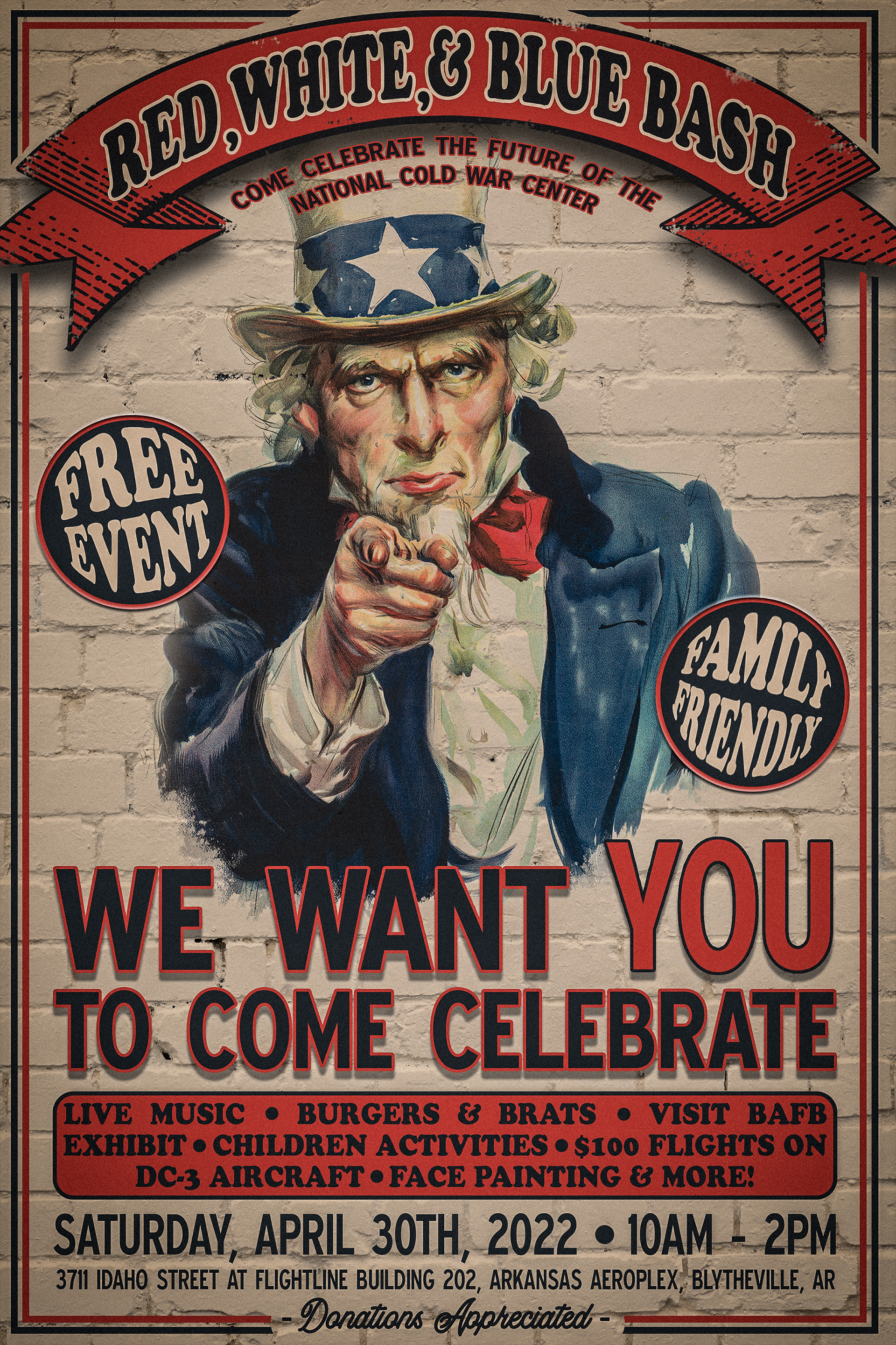 Advertising poster created for a fundraiser event benefiting the National Cold War Center in Blytheville, AR